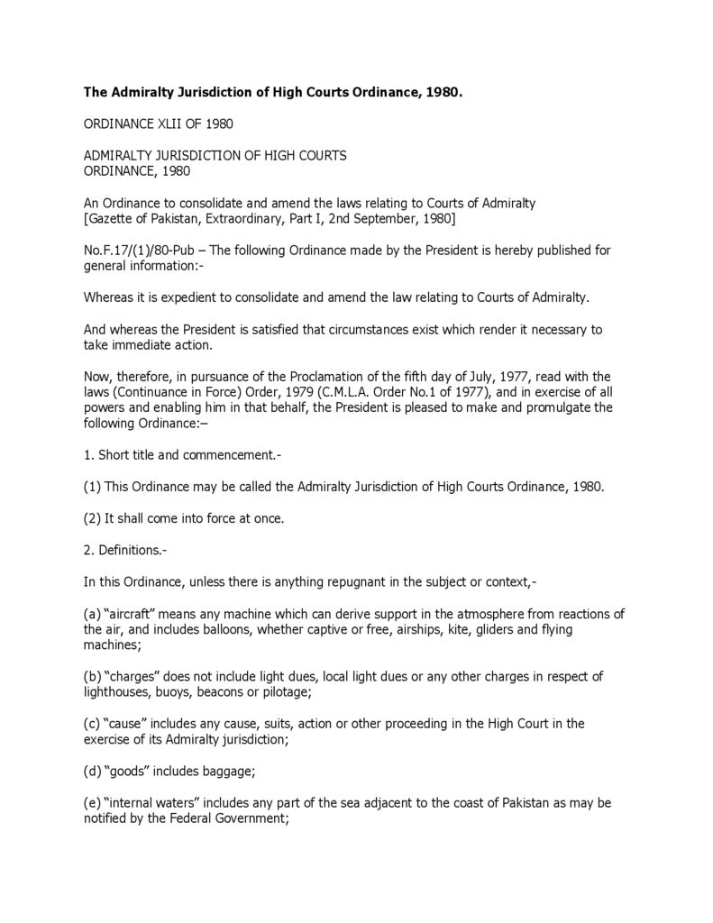 | External Link | http://www.ahmedandqazi.com/actsandregulations/shippingLaws/theAdmiraltyJurisdictionHighCourtsOrdinance 1980.pdf |